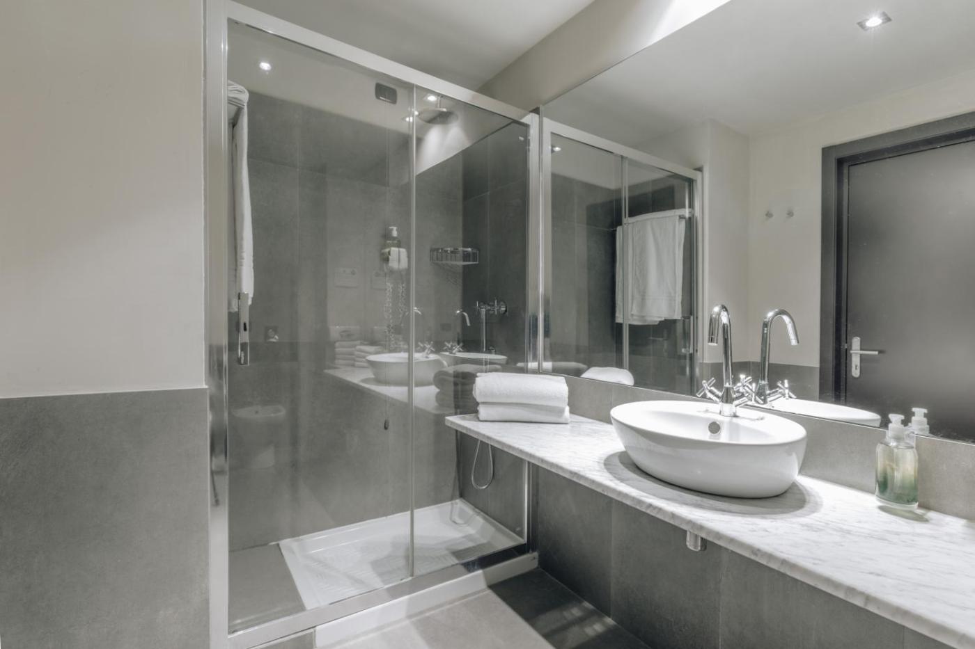 Camera Quadrupla Superior. Ampia camera con macchina da caffè e vista su Piazza della Libertà . Include TV HD a schermo piatto da 40 pollici con canali Sky, minibar e connessione WiFi a banda larga gratuita. ;