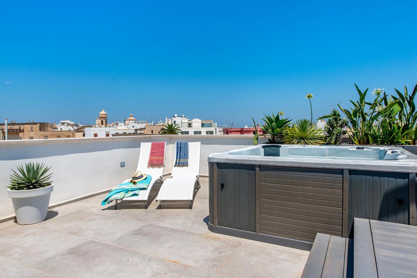 Appartamento Deluxe. The hot tub is a top feature of this apartment. Boasting a private entrance, this air-conditioned apartment comes with 1 living room, 1 separate bedroom and 2 bathrooms with a walk-in shower and a bidet. The well-equipped kitchen has a refrigerator, a dishwasher and kitchenware. The spacious apartment features soundproof walls, a minibar, a tea and coffee maker as well as a terrace with city views. The unit has 3 beds.