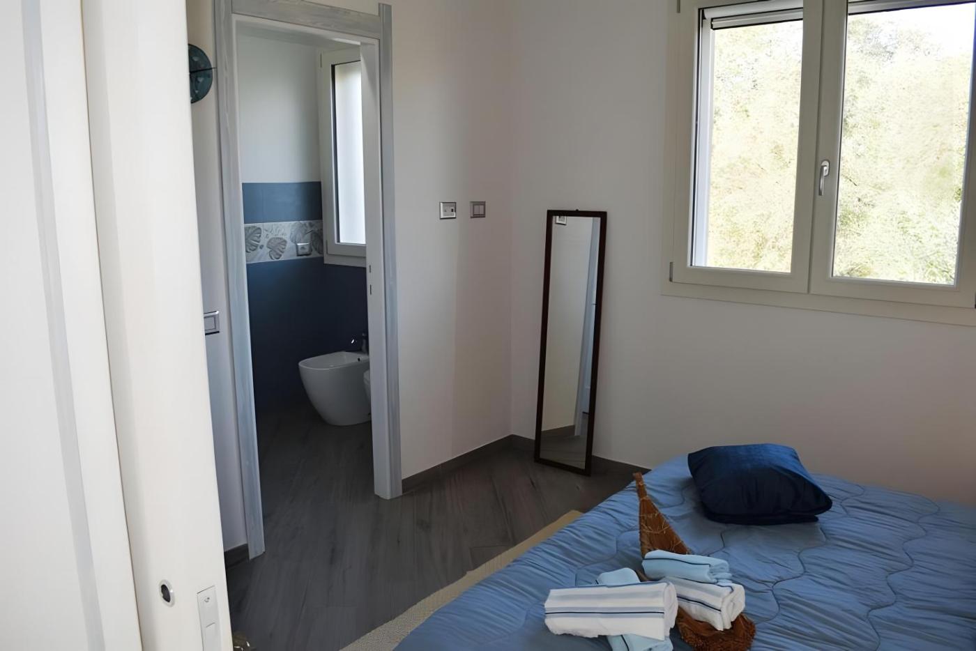 Questa casa vacanze presenta 3 camere da letto, 3 bagni, lenzuola, asciugamani, una TV, una cucina con utensili e una terrazza con la vista sul giardino.